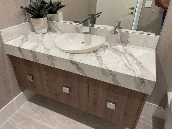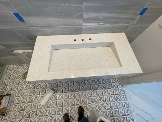 We fabricate the material to the template created for your project. We then come & install your vanity and make sure the job is prefect before we leave.